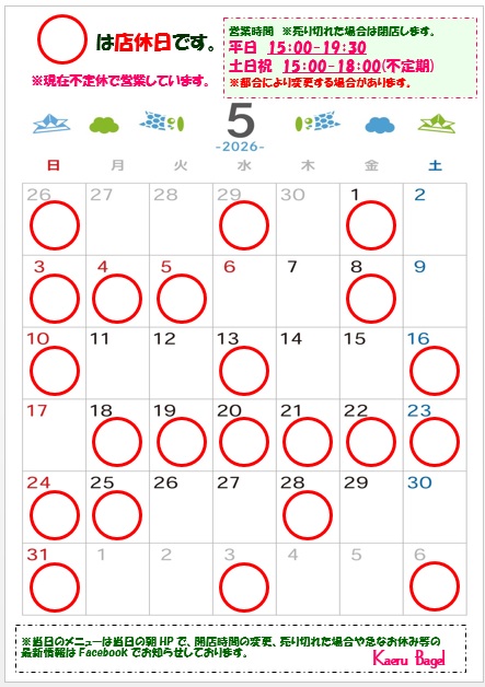 ◎5月の営業カレンダー ※4/29Up