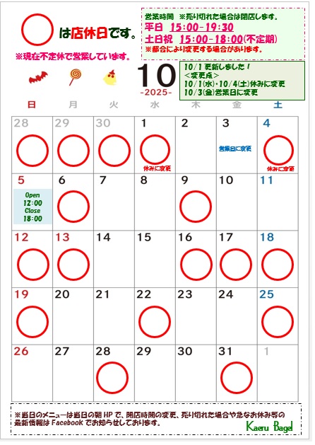 ・ご来店前には最新の営業カレンダーとFacebookをご確認いただけますと助かります。